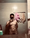 I'm a single, well-built, muscular man from Longgang who regularly works out.